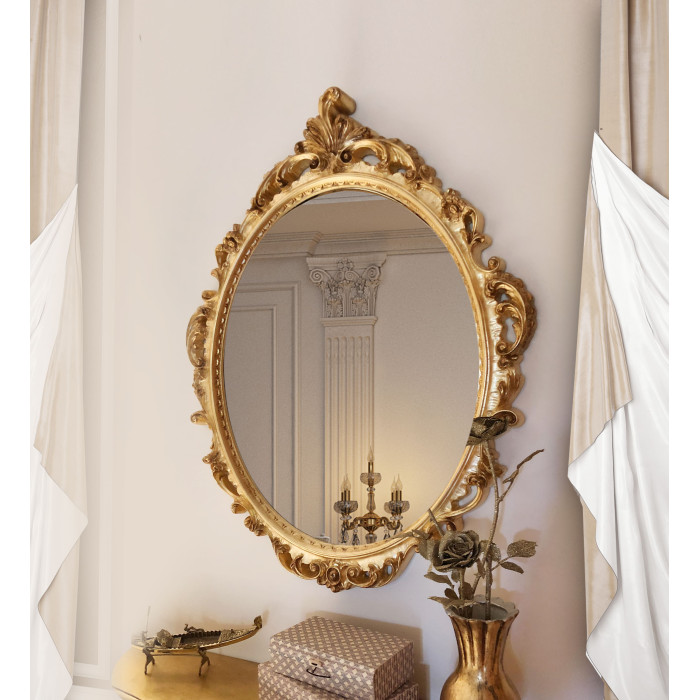"Rosana" у класичному стилі це любов з першого погляду. Ідеальні штрихи деталей золотої рами одразу приковують око до цієї краси, однозначно воно прикрасить будь-яке приміщення. Крім того, дзеркало допомагає зробити кімнату світлішою та візуально збільшити її площу. Як правило, вертикальні «видовжують» простір, а горизонтальні – розширюють його. Пропонуємо разом із дзеркалом придбати консоль з колекції Rosana.