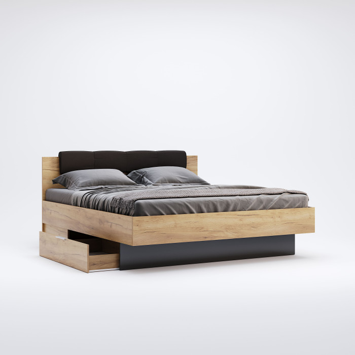- Висувні ящики:Під спальним місцем розташовані висувні ящики для зберігання речей, що дозволяє ефективно використовувати простір під ліжком.