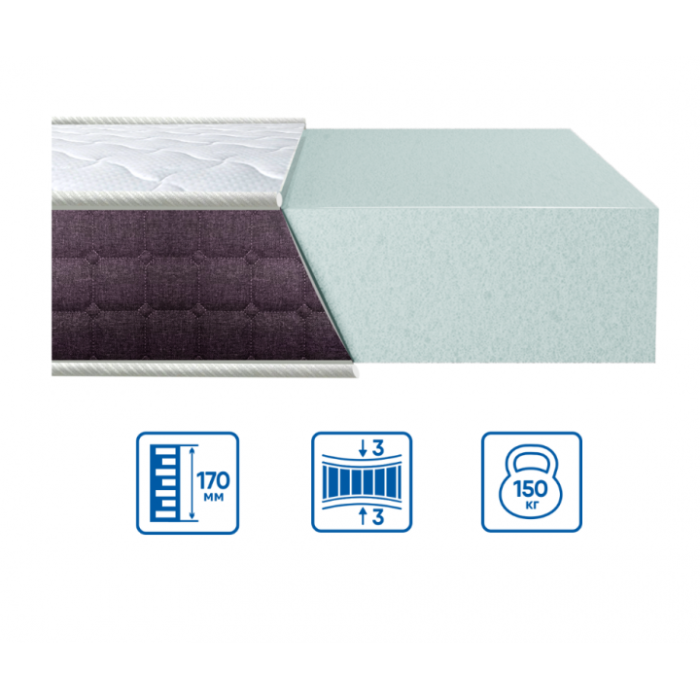 Модель матраца підійде для тих, хто шукає якісний та довговічний матрац. Матрац має привабливий сучасний вигляд та виконаний у чохлі з високоякісної трикотажної тканини, наповнення складається з монолітної основи з піни «AIRYFOAM» високої щільності, яка виготовляється на потужних та провідних галузевих підприємствах Європи.