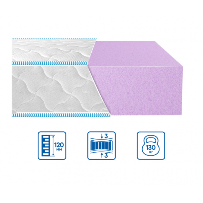 Ця модель підійде для тих, хто шукає якісний бюджетний безпружинний матрац. Матрац має однакову жорсткість з обох боків. Верх та борт матраца виконаний у тканині ЖАККАРД. Дана тканина підвищеної міцності складається з щільно переплетених ниток і простігана шовковою ниткою. Внутрішнє наповнення складається з монолітної основи високоякісної піни «FLEXI» європейського походження.