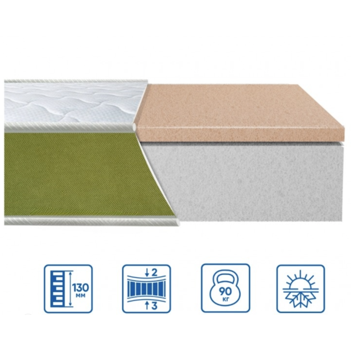 Модель має різну жорсткість з різних боків, підійде для тих, хто шукає якісний бюджетний безпружинний матрац з матеріалом меморі. Чохол виготовлений із якісної жакардової тканини. Борт матраца виконаний із надміцної тканини. Внутрішнє наповнення складається з монолітної основи з високоякісної еластиної піни європейського походження та матеріалу меморі з одного боку. Має ефект зима-літо.