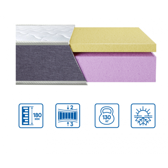 Матрац виконаний із якісного екологічно чистого матеріалу, який не викликає алергічних реакцій. За тканиною матраца нескладно доглядати, не потрібно спеціальних пристроїв. Тканина дихає, максимально пропускає повітря. Матрац витримує різні навантаження. Завдяки відпочинку на такому матраці можна запобігти болю в спині та викривлення хребта. Комфортний сон у зручному положенні на спеціальному матраці – задоволення та здоров'я.
