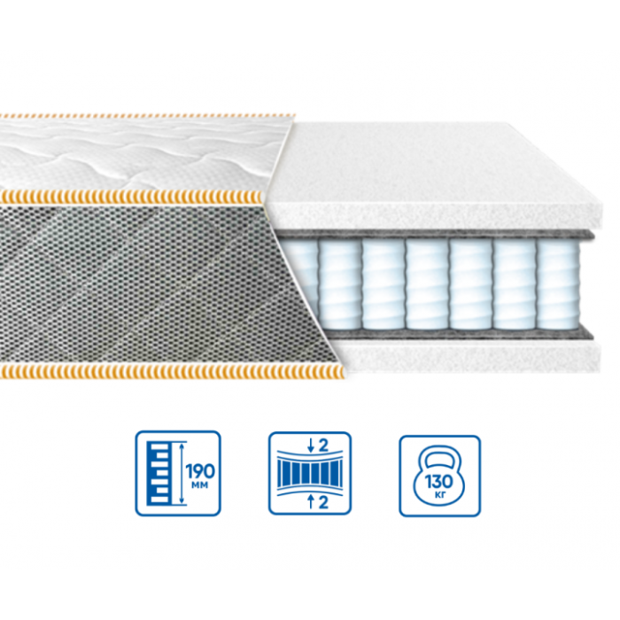 Ця модель підійде для тих, хто шукає якісний бюджетний матрац з незалежними пружинами. Матрац має однакову жорсткість з обох боків. Верх і борт матраца виконаний у тканині ЖАККАРД. Дана тканина підвищеної міцності складається з щільно переплетених ниток і простігана шовковою ниткою. Внутрішнє наповнення складається з ПОСИЛЕНОГО блоку "Pocket spring", посиленого єврокаркасу, термоповстьу та піни «FLEXI» європейського походження. Незалежні один від одного пружини забезпечують точкову підтримку тіла та добре підтримують хребет.