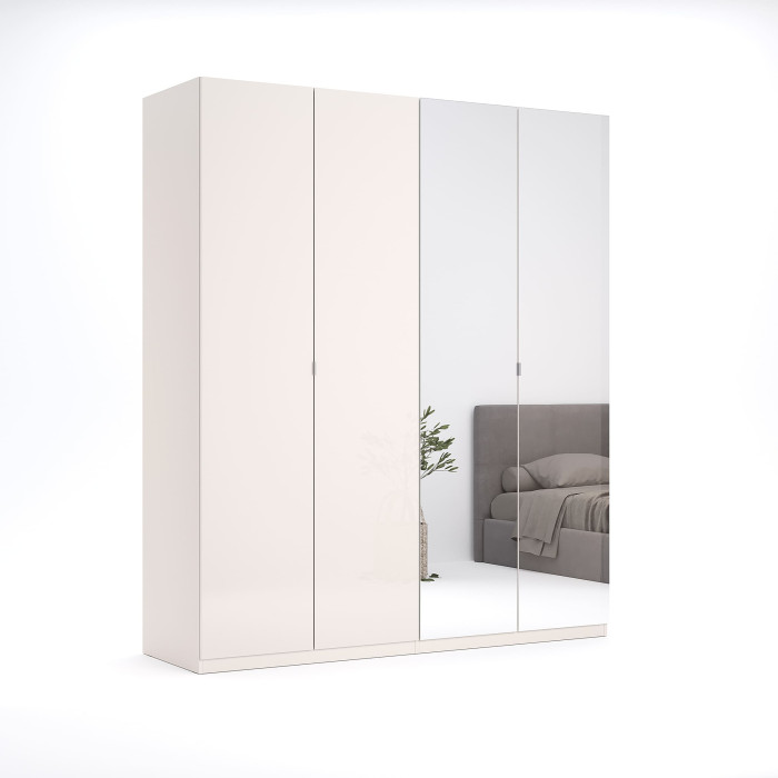 - Чотиридверна шафа з двома дзеркальними дверцятами у повний зріст для додавання світла та простору.
