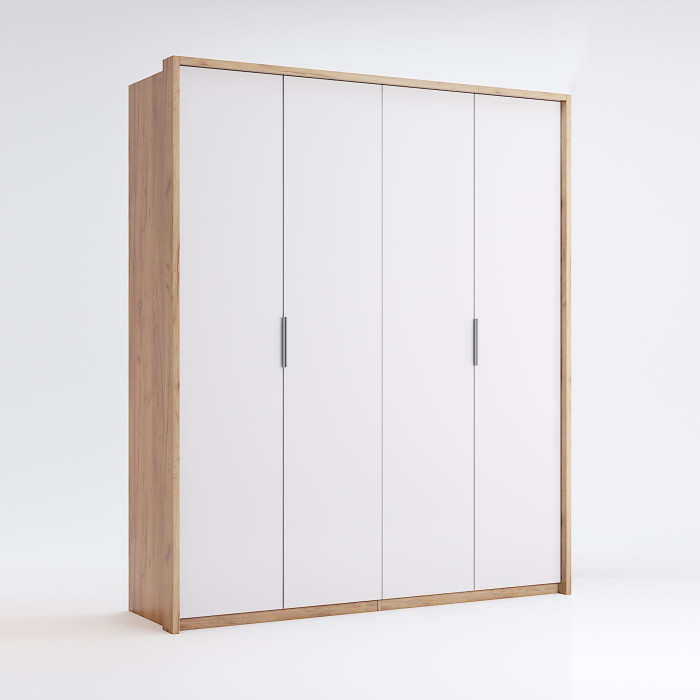 Алюмінієва профільна ручка; Пластмасова ніжка, покрита сатином в колір ручки; Трьохскладові шарикові підвищеної міцності телескопічні направляючі повного висуву; Завіса підвищеної міцності; Розсувний механізм шаф-купе hettich. Можлива доукомплектація опцією плавного закриття; Металеві фіксувальні, антивисувні полкотримачі; З`єднання деталей за допомогою ексцентрикової стяжки (MINIFIX).