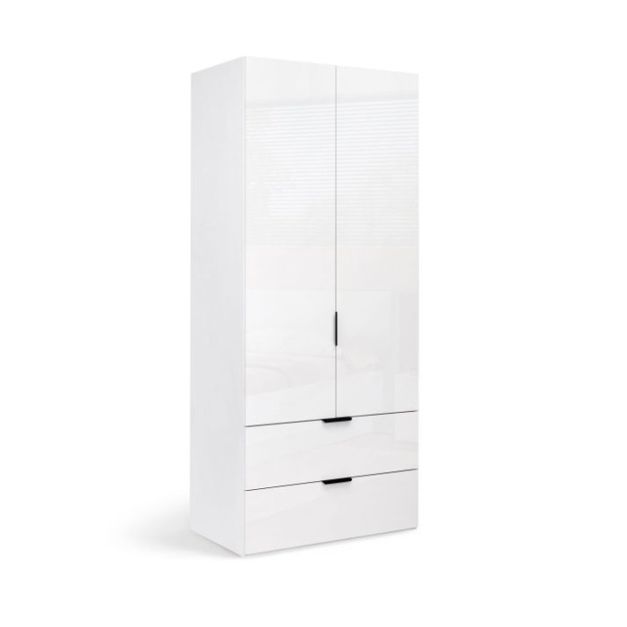 Шафа Mіла— це поєднання естетики та продуманої функціональності. Верхня частина оснащена двома глянцевими дверима, що приховують просторе внутрішнє наповнення для одягу, а нижня — двома горизонтальними шухлядами, які забезпечують легкий доступ до щоденних речей. Глянцевий фасад створює ефект світла та простору, а матовий корпус додає глибини та стриманості.