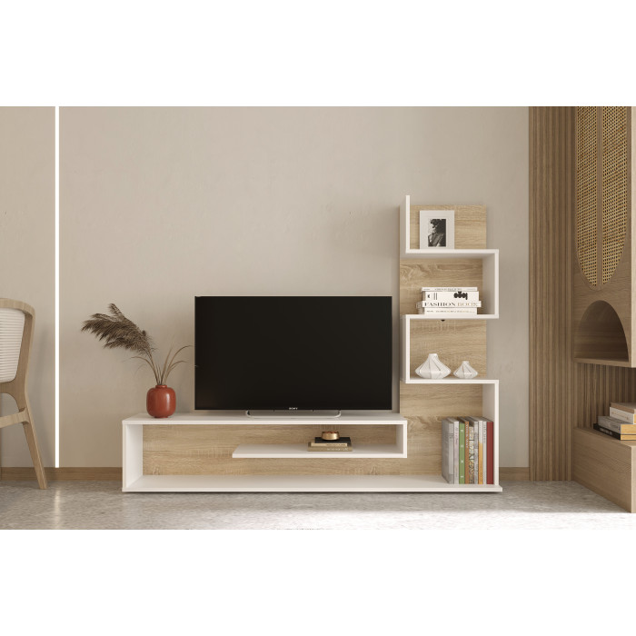 Стінка СНЕЙК складається з комбінованої тумби під телевізор з безліччю відкритих полиць. Максимальне навантаження на стільницю становить 15 кг.