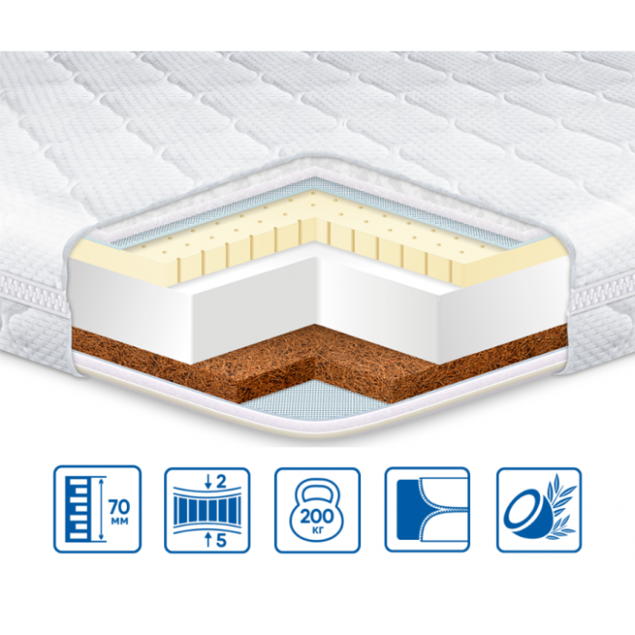 КОКОС З НАТУРАЛЬНИМ латексом - це матеріал з волокон кокосового горіха, просочений латексом. Природні вентиляція, еластичність, міцність, пружність, гігієнічність та антиалергенність. Цей матеріал не деформується, не вбирає вологу та не сипеться. Використовується в моделях, призначених для любителів жорсткішого та пружного спального місця.