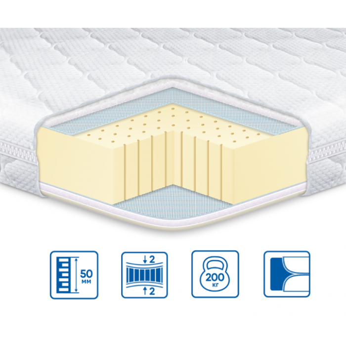 Дана модель двостороння з м'яким (м'яким і водночас пружним) рівнем жорсткості. Натуральний LATEX надає топеру м'якість, але в той же час має властивості пружності, що дозволяє підтримувати ваше тіло в анатомічно правильному положенні під час сну. Топпер зробить Вашу спальну поверхню рівною та зручною, він може знадобитися на випадок, якщо прибули гості. Топпер ще називають тонким матрацом, і його можна використовувати на матрацах, диванах, на підлозі.